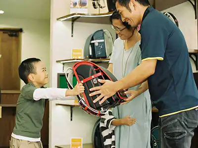 お店や展示会に足を運んで、いろんなランドセルを試着してください。大阪本店以外にも、各地でPOP-UP STOREや展示会を開催いたしておりますので、ぜひお越しくださいませ!