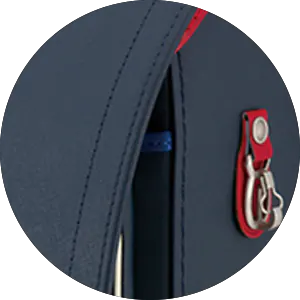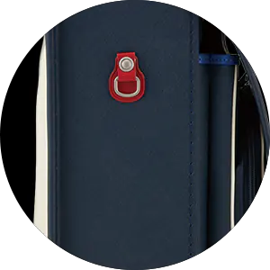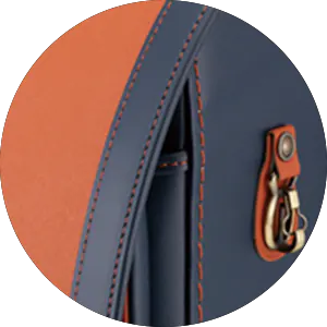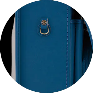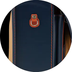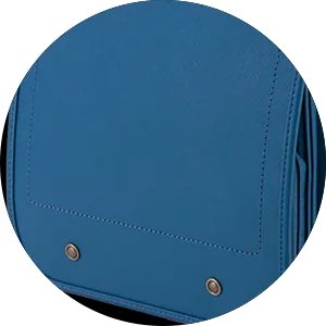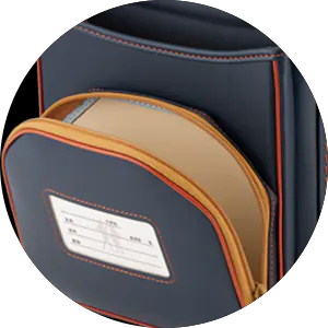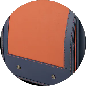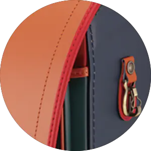 職人がデザインしたレディーメイド(既製品)のランドセル。オーダーメイドでは組み合わせできないコバ塗りの色やフチの組み合わせなど、細部にこだわりが光るカスタム済みのランドセルです。