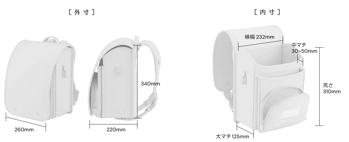 | 外⼨ | 高さ34.0cm×横26.0cm×厚さ22.0cm |