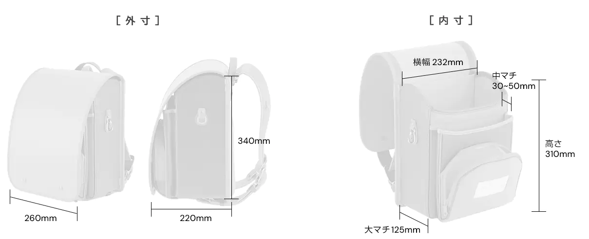 | 外⼨ | 高さ34.0cm×横26.0cm×厚さ22.0cm |